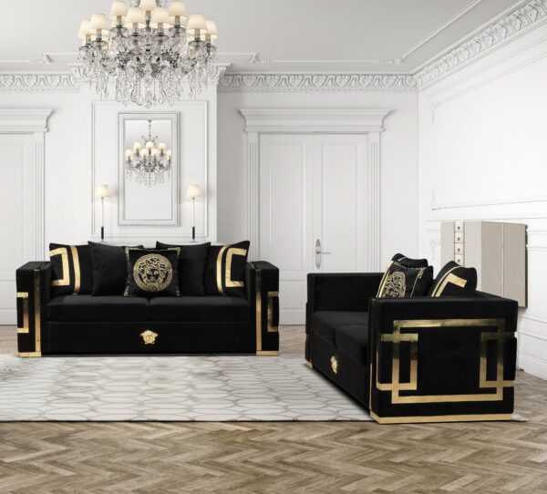 2 piece Apollo 3+2 seater black & gold