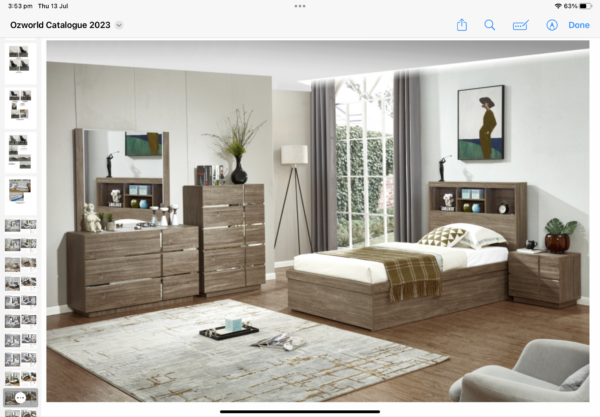 3PC bedroom suite includes 1 Single bedframe + side gas lift & foot draw, light & usb port + 1 bedside + 1 tallboy