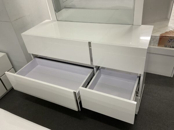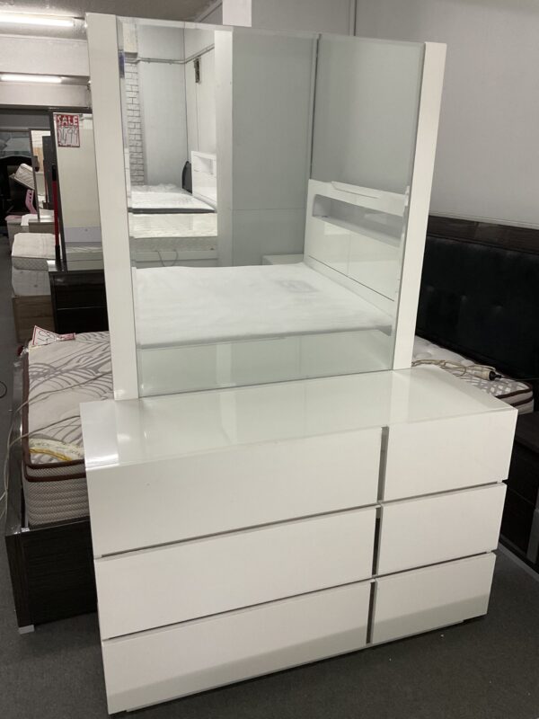 Assembly– bed head is assembled, bed frame (body) needs to be assembled, bedsides are assembled, dresser is assembled, only need to attach mirror