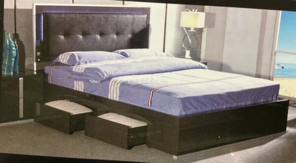 4Piece bedroom suite includes 1 king size bedframe with 4 draw base (please note for front gas lift you must choose and click below) Light & usb charger + 2 bedside + 1 dressing table
